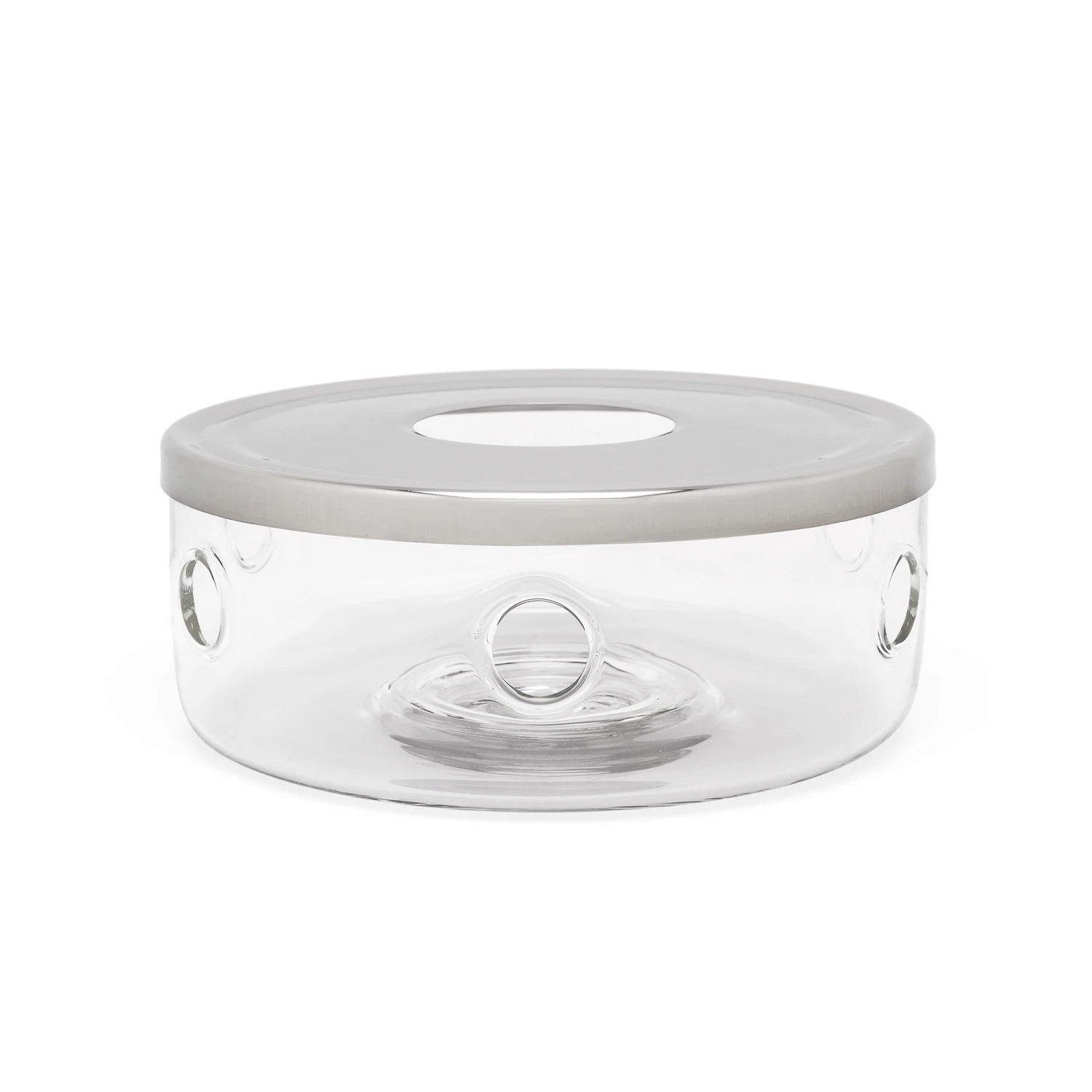 Glazen theelicht van hittebestendig glas dat perect pas bij de Glazen Minuet® Santhee van Bredemeijer. De bovenzijde is vervaardigd uit roestvrijstaal.